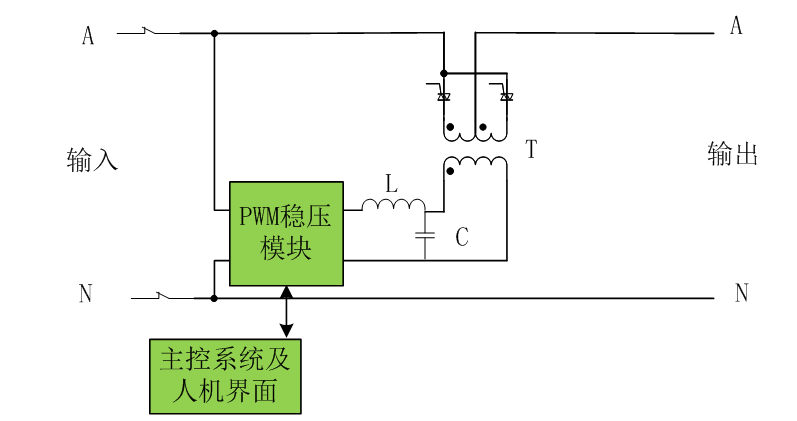 PWM型稳压器采用先进的电力电子技术,使用PWM控制技术直接控制补偿电压,具有无电火花产生,快速响应,无级调节补偿电压,稳压精度高的特点。